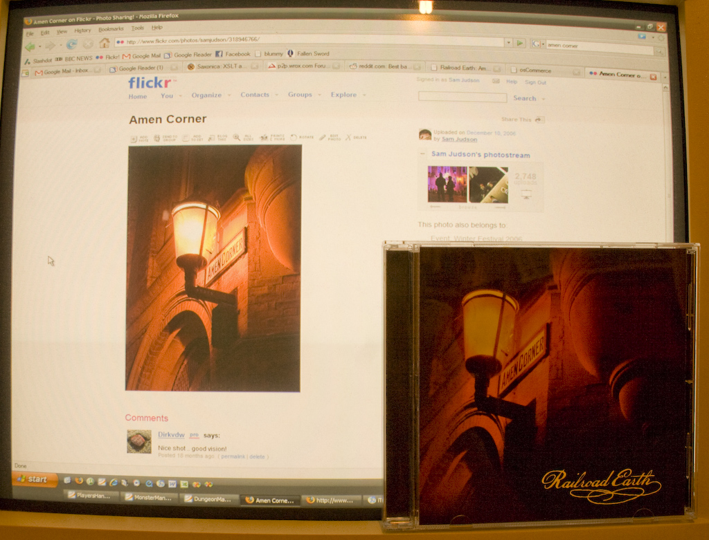 I’m pleased to announce that a photo I took a few years back was chosed to be the CD cover of american blue-grass band Railroad Earth (no, I hadn’t heard of them either). You can listen to most of the album on their web site if you want.